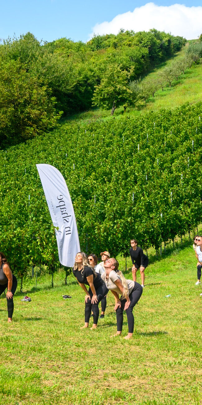 Vođene timom In Shape instruktora, sudionice su započele dan vježbama na otvorenom – nježnim, ali snažnim pokretima koji potiču ravnotežu, fleksibilnost i mentalno opuštanje. Sudionice su imale priliku iskusiti Yoga-Flow u vinogradu, pomno odabrane vježbe disanja, balansa i istezanja koje su ih pripremile za berbu grožđa koja je uslijedila.